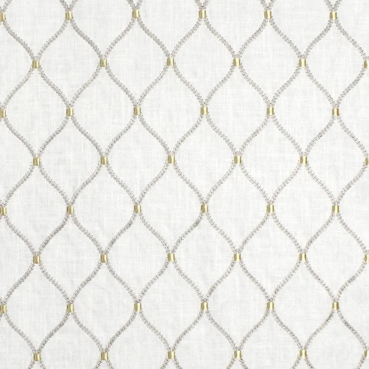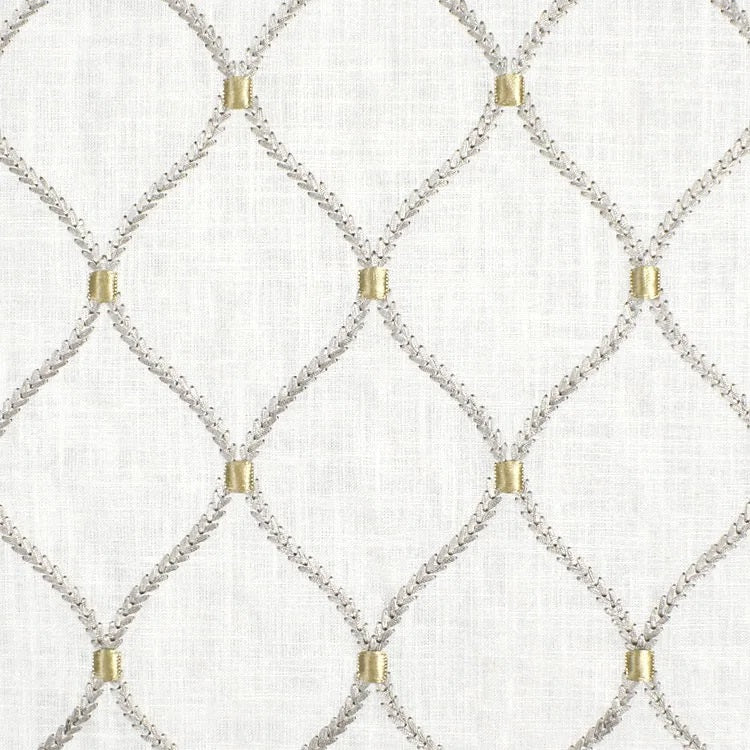 DESCRIPTION: From the Founder's Anna Elizabeth Collection, A9780 in smoke is inspired by Capri’s airy and bright Certosa di San Giacomo, a 14th-century monastery and masterpiece in the heart of the island noted for its remarkable architecture. The embroidery is in a taupe colored ogee design with taupe colored accents on a ivory colored fabric background. Anna Elisabeth is a collection made for interior designers who believe that fabric is not just a part of the room, but the soul of it.