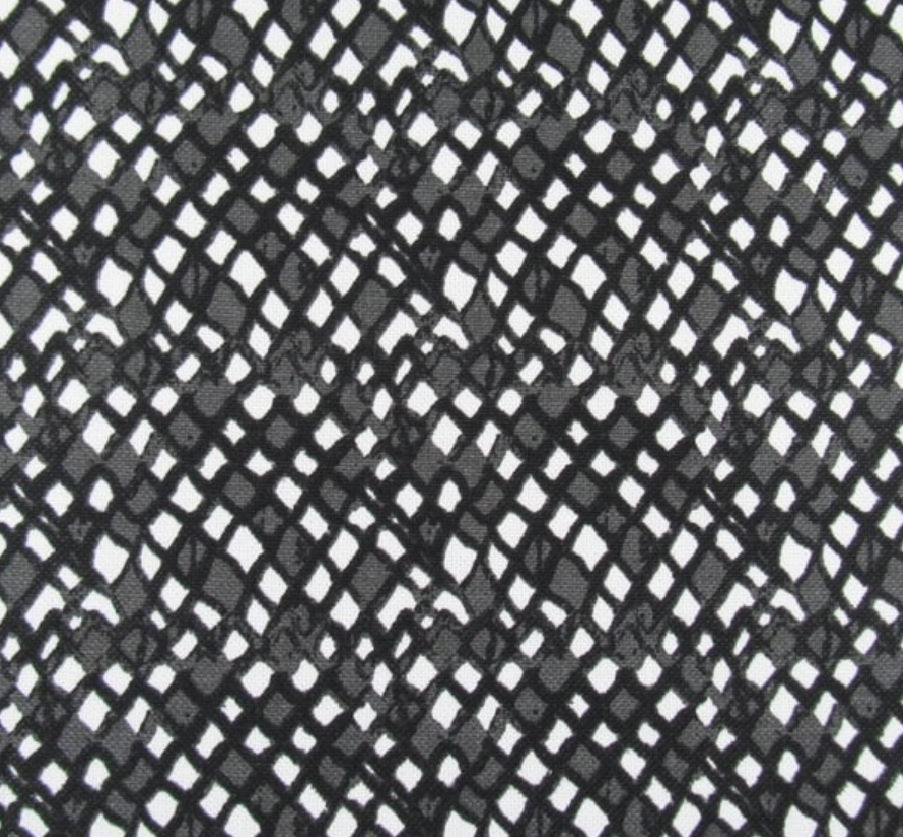 DESCRIPTION: Lacefield Designs Nora Fabric in Ink features a black, white and gray mosaic or diamond-like design or a lozenge-style design, similar to a snakeskin pattern.