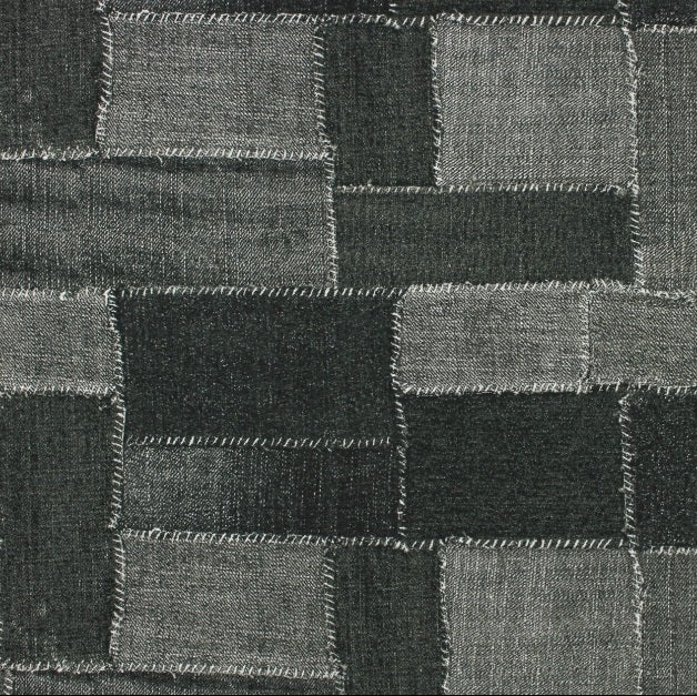 DESCRIPTION: An all over faux sewn patchwork pattern is a work of art! Shown in shades of black washed Denim textures this is a great layering piece for a novel look on all your DIY projects.