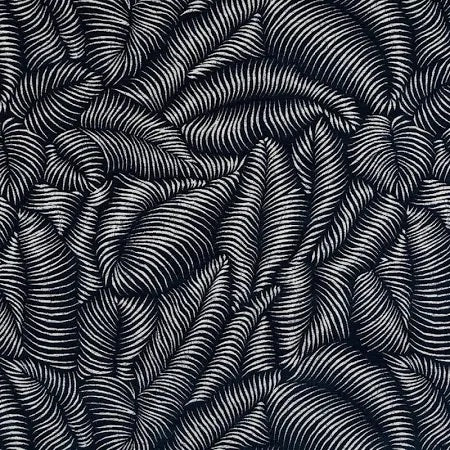 DESCRIPTION: This unique palm leaf design upholstery weight fabric that has a powerful presence and works well with several interior design styles. The color registration shows a lapis (navy) color on a natural-colored background.