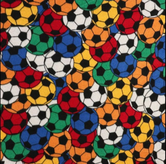 DESCRIPTION: Soccer Stadium Fleece Double Brushed Fabric in Primary features a dense, packed arrangement of soccer balls. The soccer balls are in a variety of colors, including red, blue, green, orange, yellow, and the traditional black and white. The fabric is a soft and plush fabric, that is cozy, warm, lightweight, and anti-pill. Get creative with this versatile fabric and show-off your DIY skills!