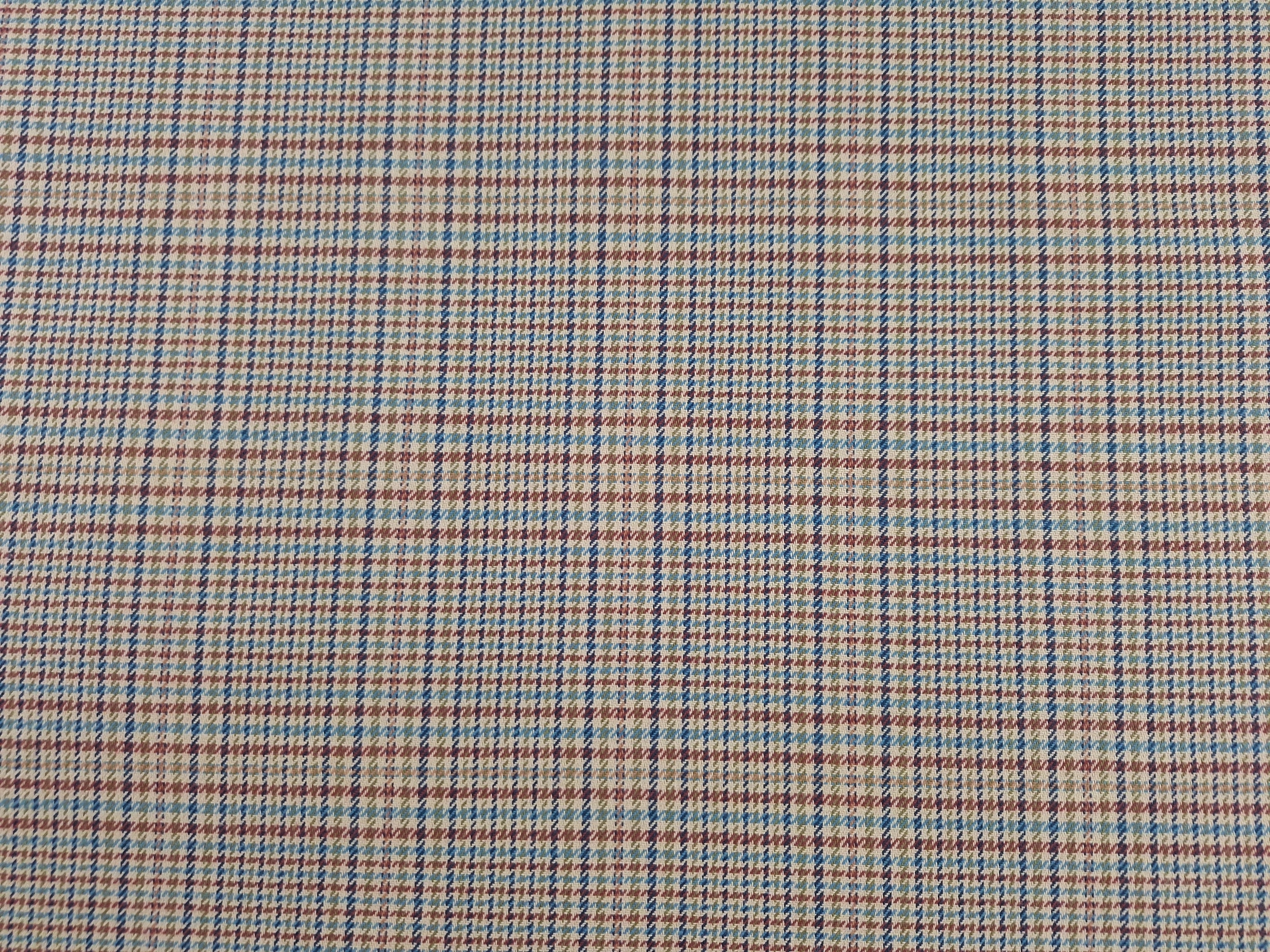DESCRIPTION: Covington Fabrics Monroe Houndstooth Fabric in 612 Wild Turkey is a classic Houndstooth woven textile pattern characterized by a check pattern with abstract four-pointed shapes, often seen in wool fabrics. The colors are inspired by the Wild Turkey color scheme inspired by the bird, which include brown, tan, teal and navy blue.