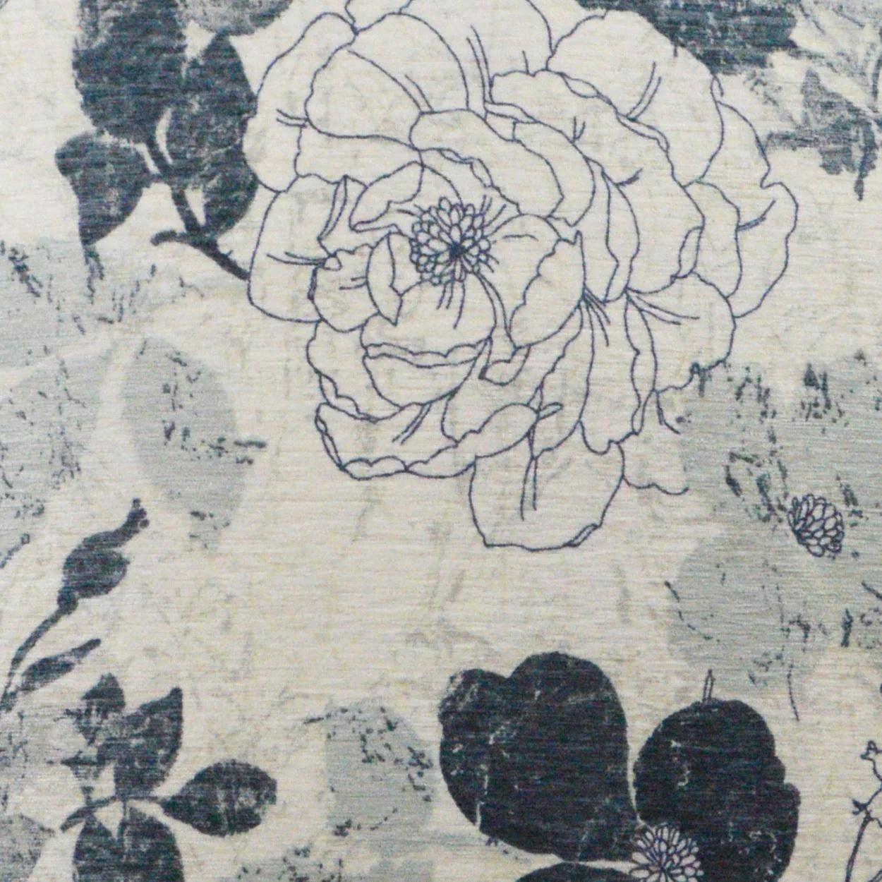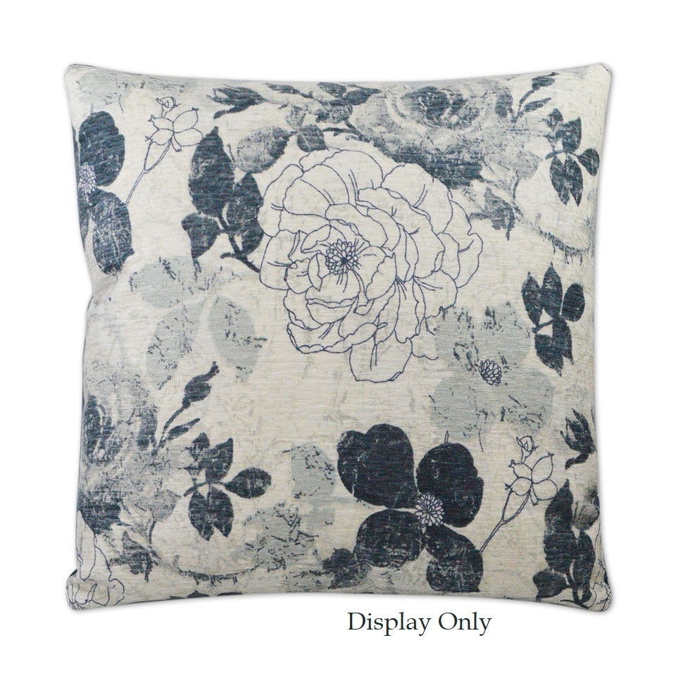 DESCRIPTION: D.V. Kap Home Mademoiselle Chenille Fabric in Blue features a floral jacquard design featuring large, stylized flowers and leaves. The pattern has a hand-painted or sketched look.