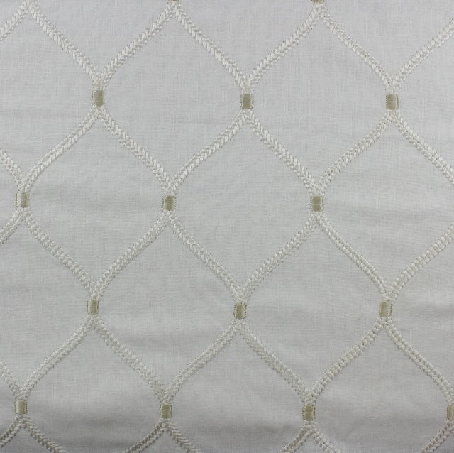 DESCRIPTION: From the Founder's Anna Elizabeth Collection, A9780 in smoke is inspired by Capri’s airy and bright Certosa di San Giacomo, a 14th-century monastery and masterpiece in the heart of the island noted for its remarkable architecture. The embroidery is in a ivory colored ogee design with taupe colored accents on a ivory colored fabric background. Anna Elisabeth is a collection made for interior designers who believe that fabric is not just a part of the room, but the soul of it.