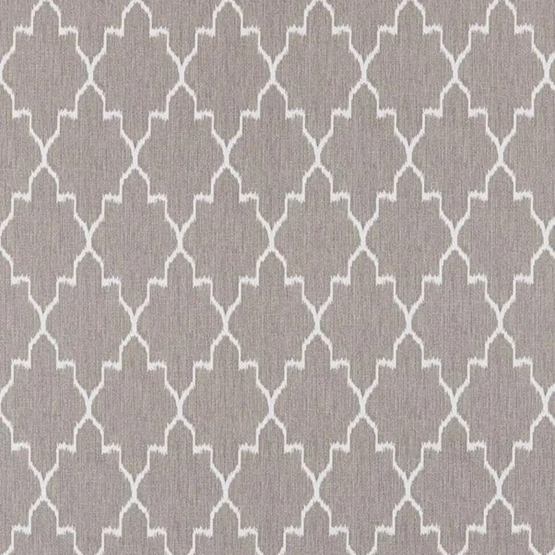 DESCRIPTION: Lacefield Designs Monaco Fabric in Linen features a trellis design in the color ivory in a natural linen colored fabric.