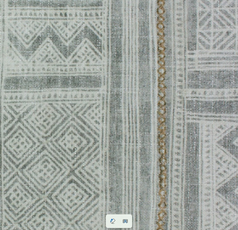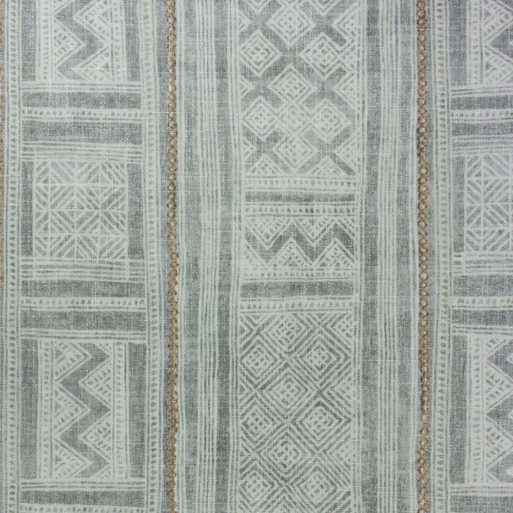 DESCRIPTION: From the Lemieux Et Cie Heirloom Collection, Inlet features bold geometric patterns, ethnic motifs, and earthy color palettes, creating unique and eye-catching designs. The color registration shows grey, and gold on an off-white background.