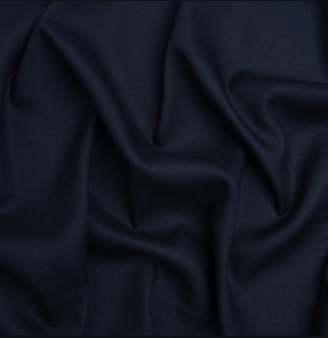 DESCRIPTION: A lightweight, soft woven fabric characterized by its fluid drape, smooth texture and breathability in a true navy color.