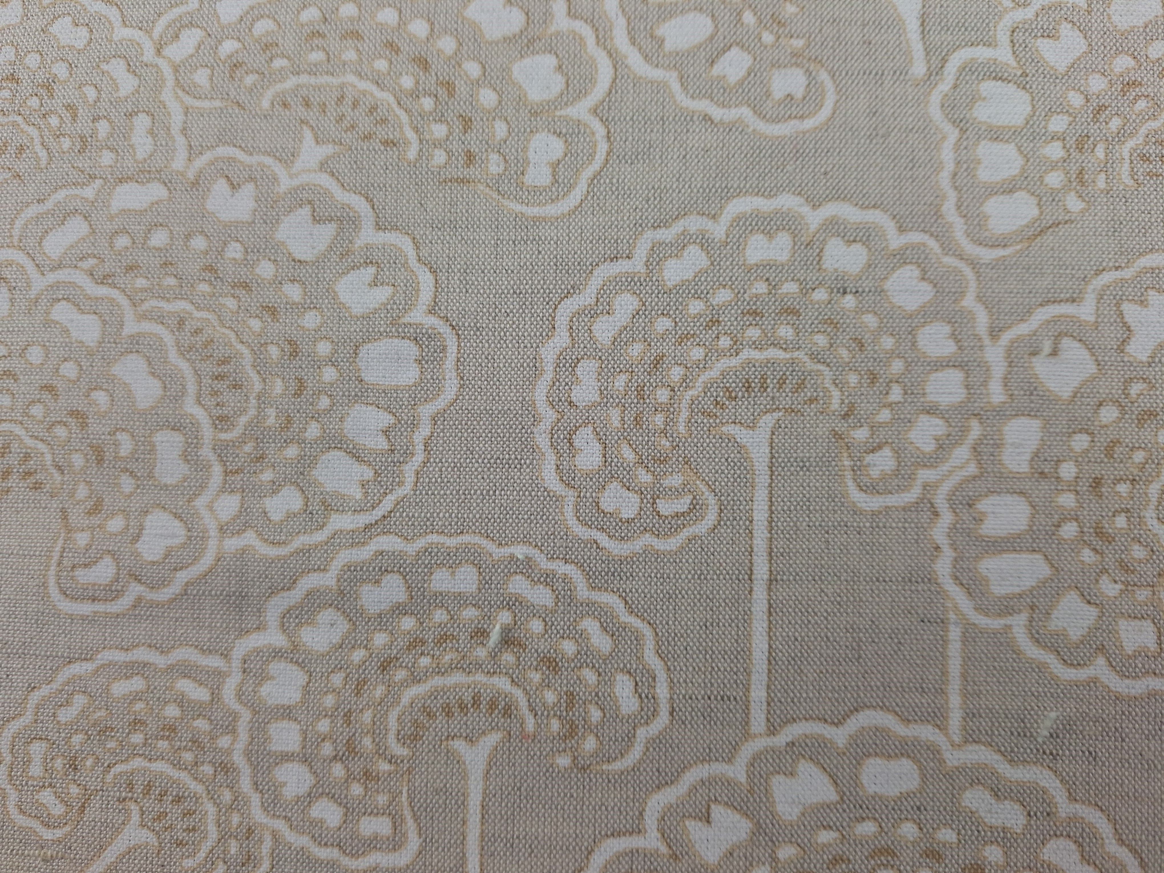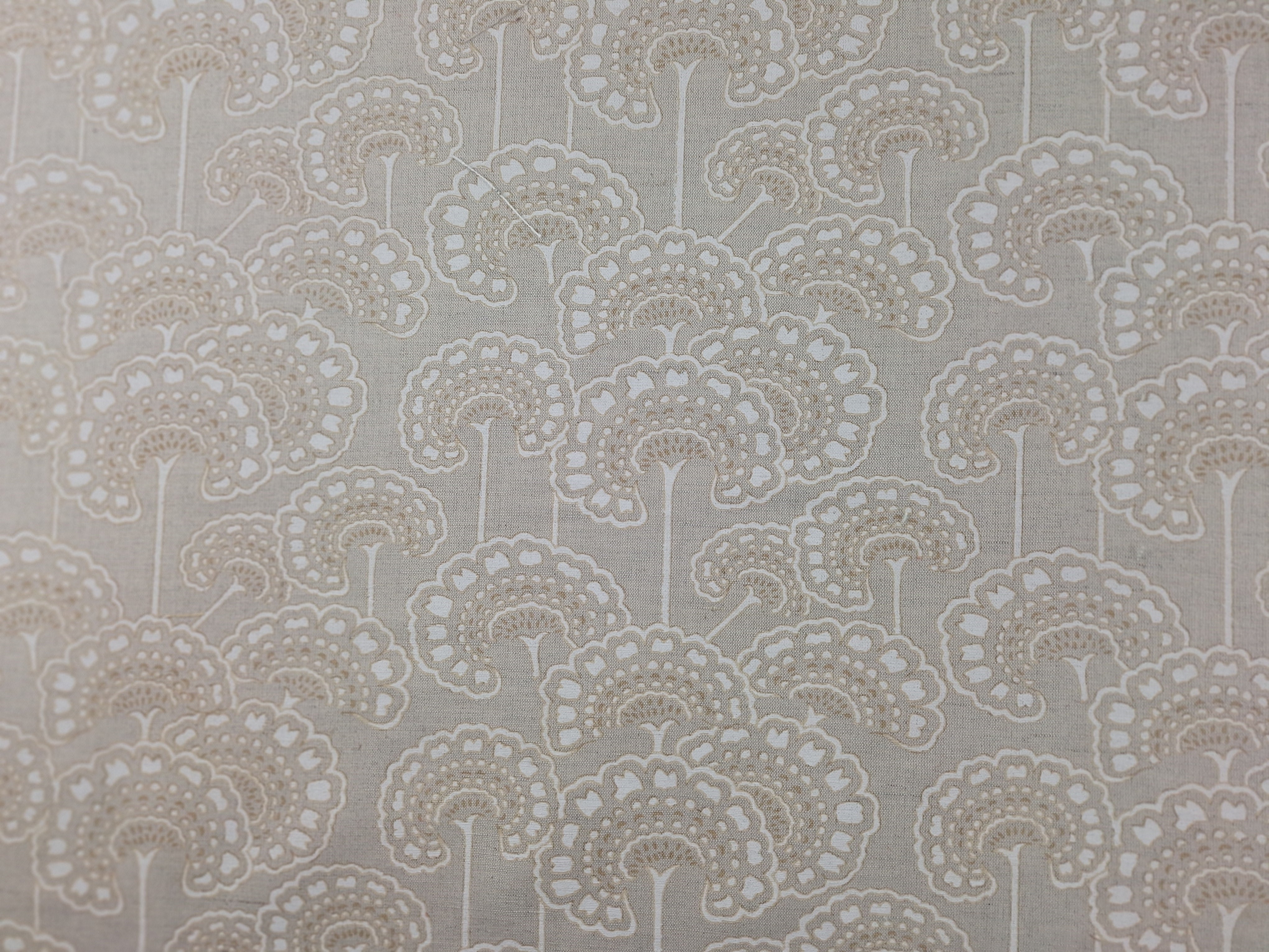 DESCRIPTION: From Stout Textiles Collection, Comfortable Living Collection, Thurmond 1 in Desert is a botanical, floral design in natural tones known to create a calming and relaxing atmosphere in a room. These colors evoke a sense of tranquility and can help reduce stress and anxiety, while promoting a more peaceful environment. The color registration shows cream and caramel on a natural linen colored background fabric.