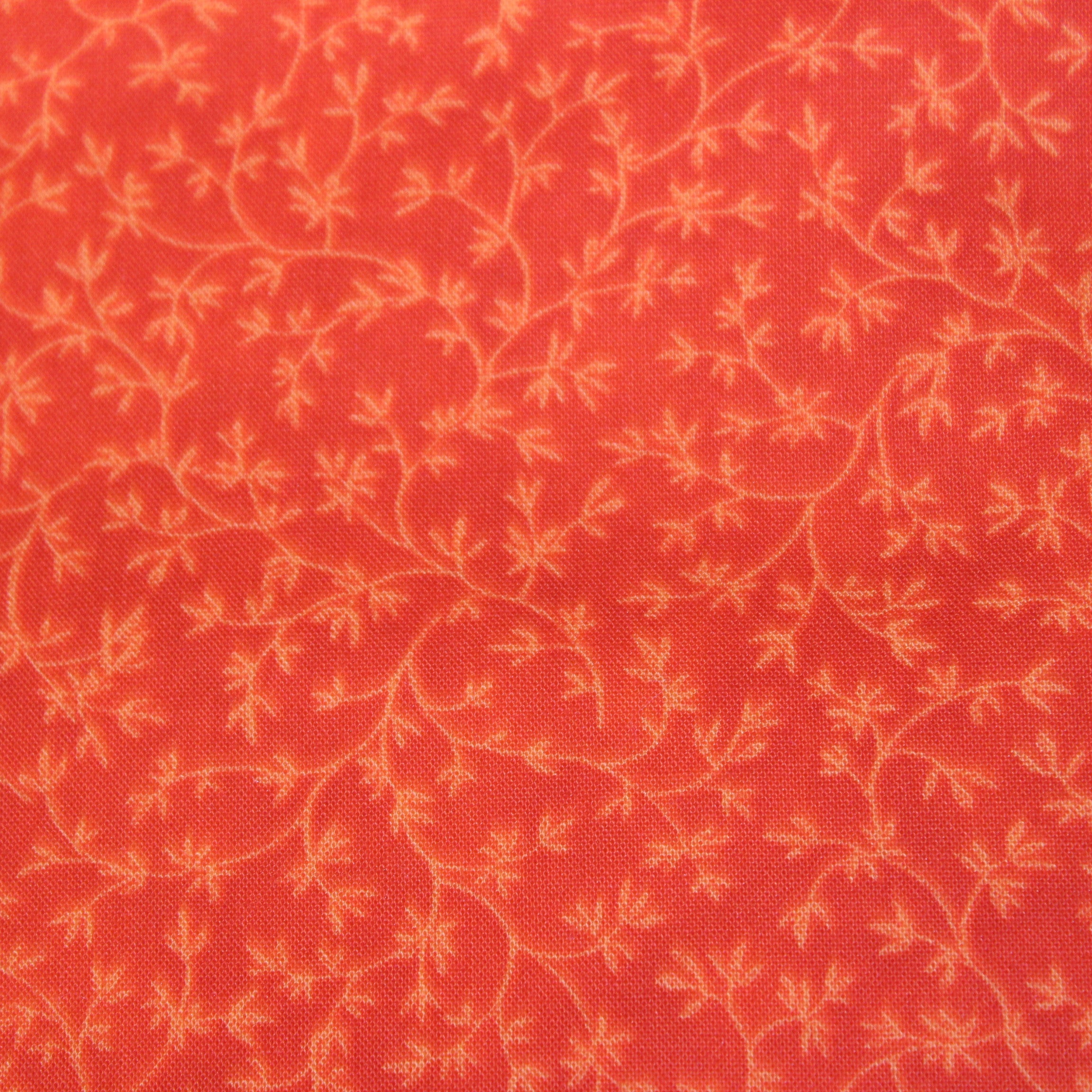 DESCRIPTION: From Stof's Quilters Coordinates Collection, Leaf Vines features a tone-on-tone design with a pattern of delicate leafy vines on a orange background.