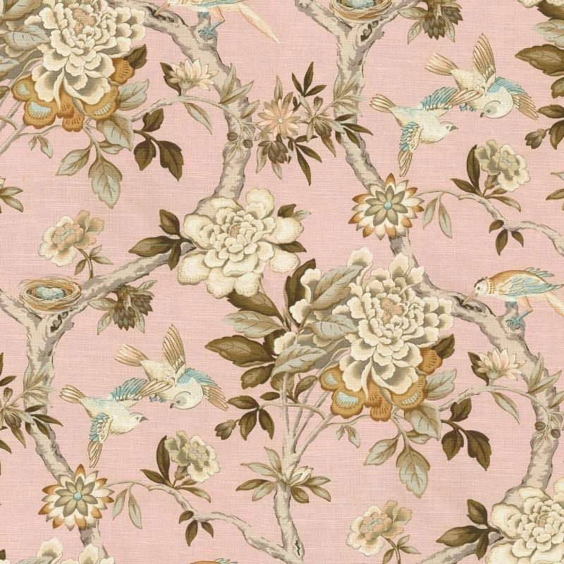 Waverly Mudan Chinoiserie Bird Fabric in Blush
