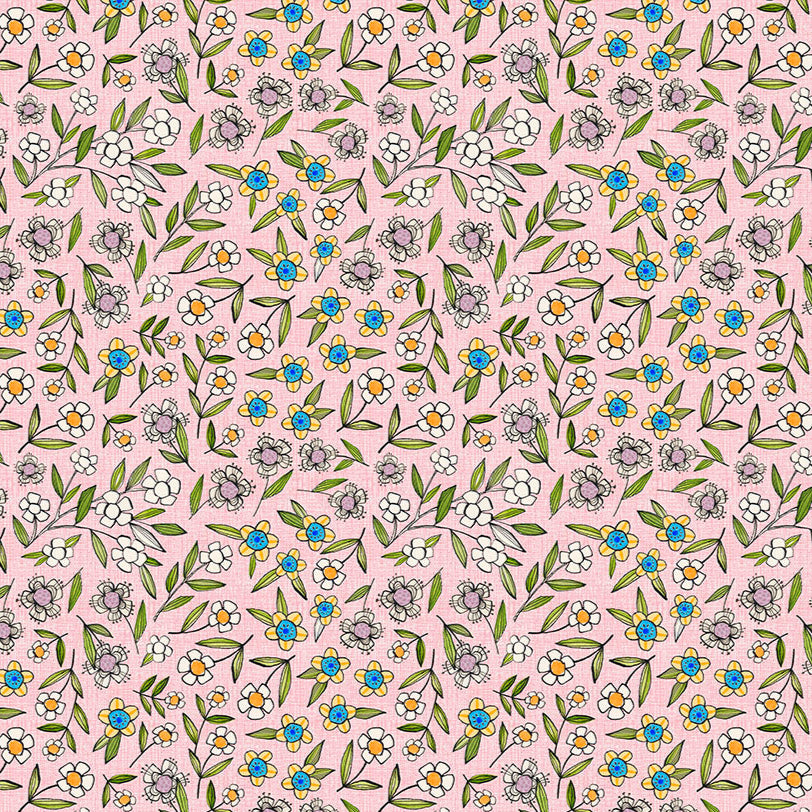 DESCRIPTION: Free Spirit Fabrics Garden Floral Quilting Fabric in Pink by Cori Dantini features a seamless ditsy floral pattern in a soft pink background.