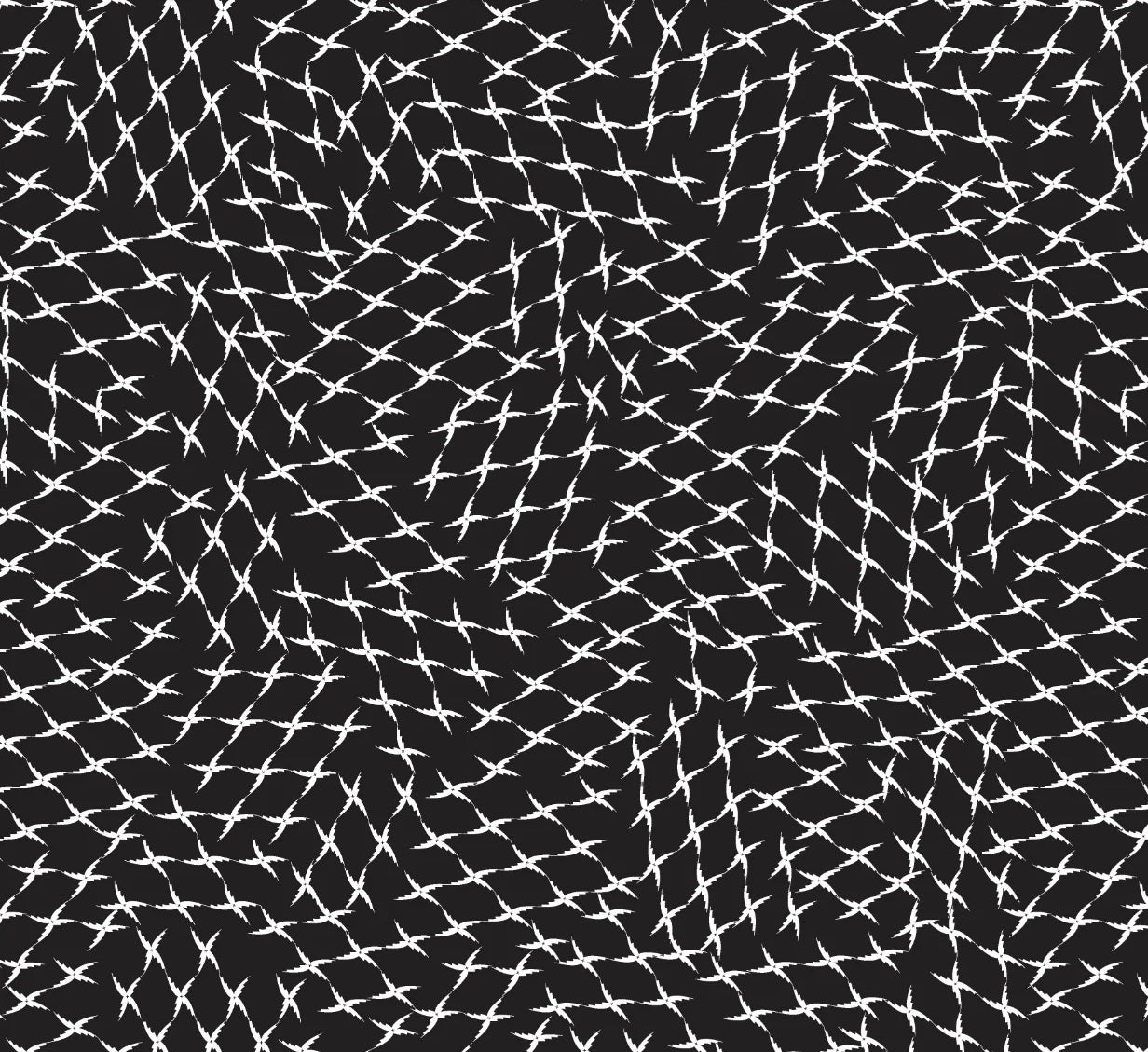 DESCRIPTION: Wander Black from the Night Fancy Collection by designer Victoria Findlay Wolfe for Free Spirit Fabrics features a distressed or textured pattern of white crosses or "x" shapes arranged in a somewhat grid-like, yet organic and slightly swirling, formation against a solid black background.