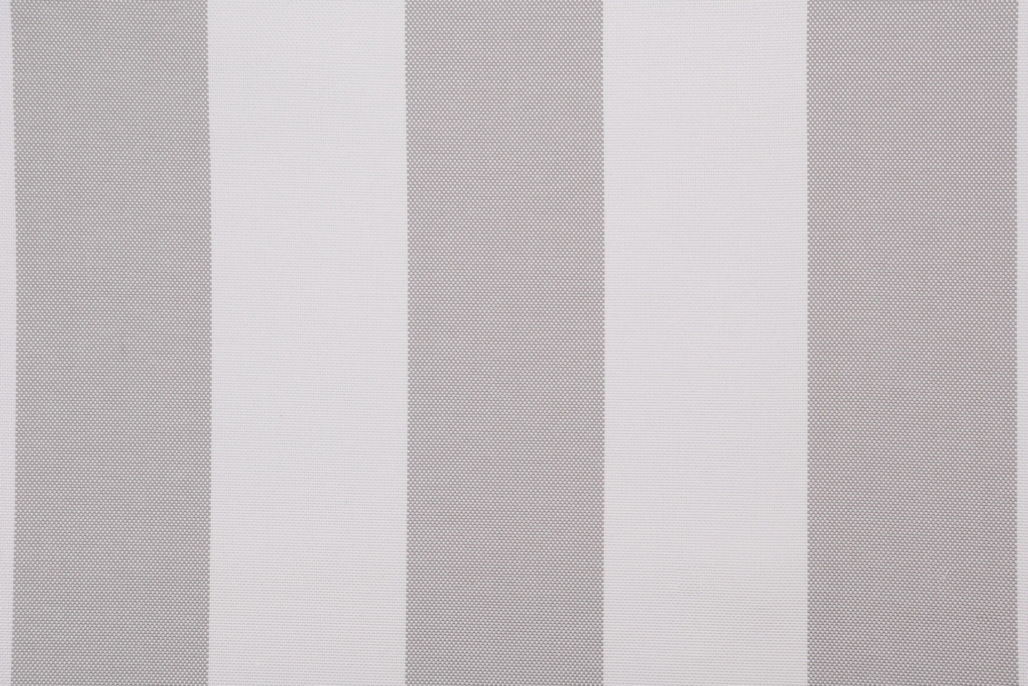 DESCRIPTION: Sunbrella Solana 32008-0000 Woven Outdoor Fabric in Seagull features a classic cabana design of bold, vertical cabana stripe pattern with alternating wide bands of light gray/silver and white.