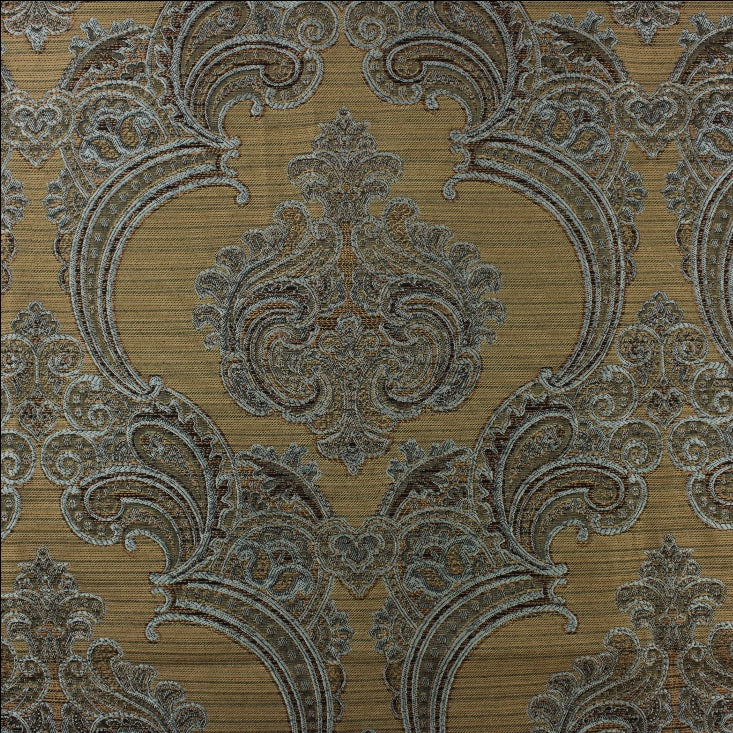 DESCRIPTION: Both traditional and elegant, Carlisle is a jacquard fabric with a ornamental damask paisley design in dark gray gray and hints of copper tones on a butterscotch background. This intricate pattern won’t fade with uses making it great for upholstery projects and more. Made of 100% polyester this fabric is durable, strong, and wrinkle resistant but with a luxurious feel.