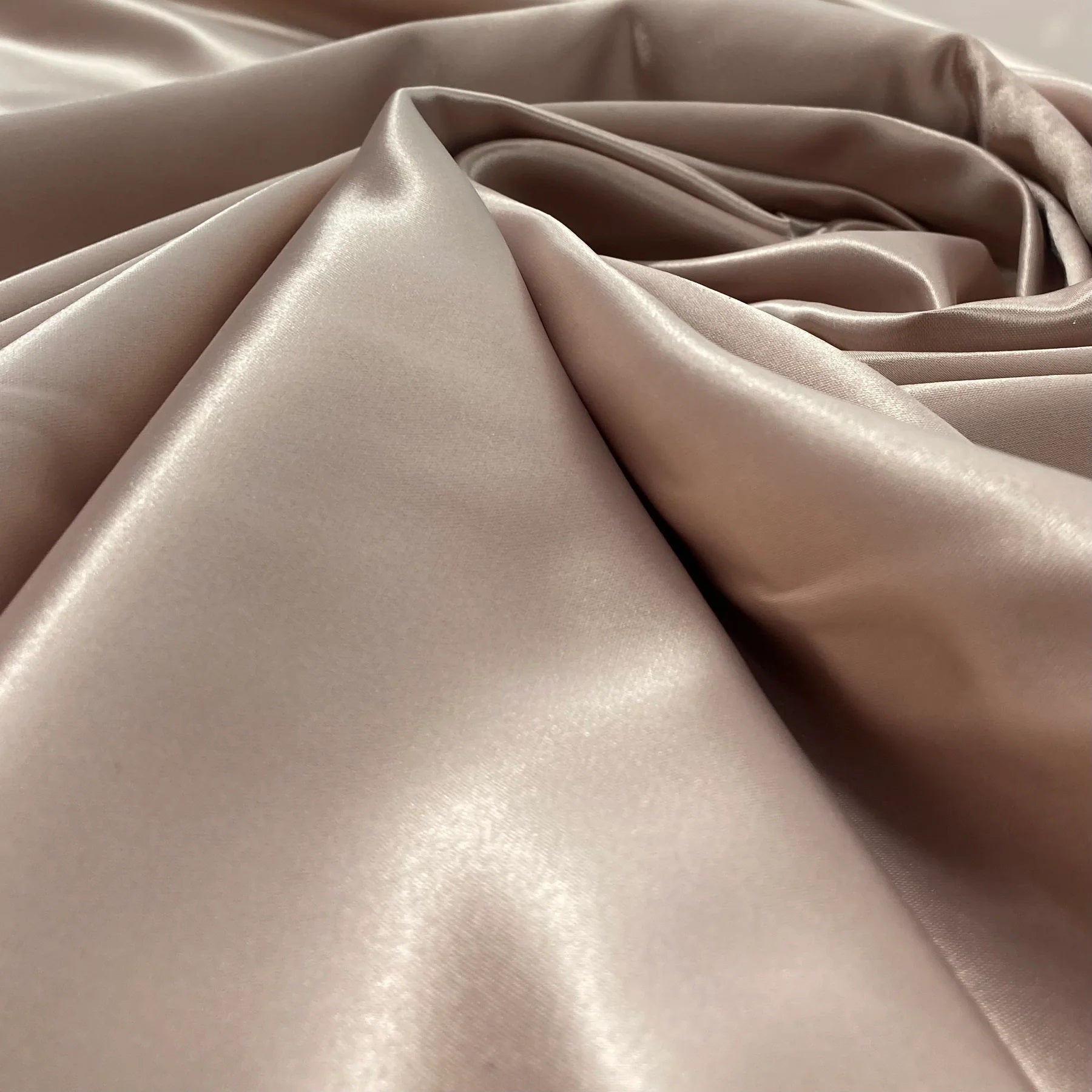 DESCRIPTION: This satin fabric offers a lovely drape and a gorgeous sheen in taupe. Uses include wedding gowns, formal wear, neckties, apparel, event decorations, costumes and dancewear. We offers several satin fabrics in a wide variety of colors.