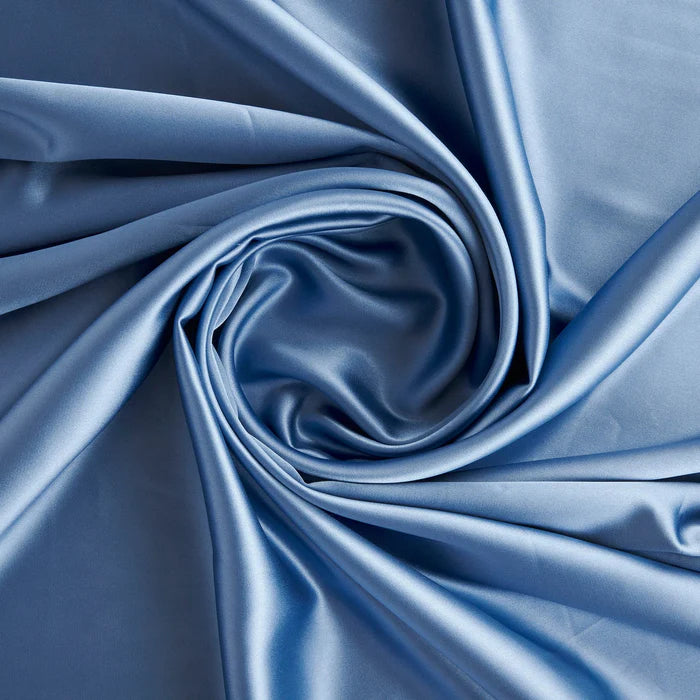 DESCRIPTION:   Crepe satin fabric is an elegant, silky fabric with a slightly textured finish. Woven with 100% polyester fibers,, the fabric is wrinkle-resistant and insulating. The light-weight fabric has a beautiful full drape and flow.