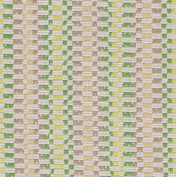 DESCRIPTION: Tapestry fabric is a woven textile made from colored threads that are intricately woven together to create stunning patterns and designs. The color registration shows shades of green, yellow/maize, beige and cream.