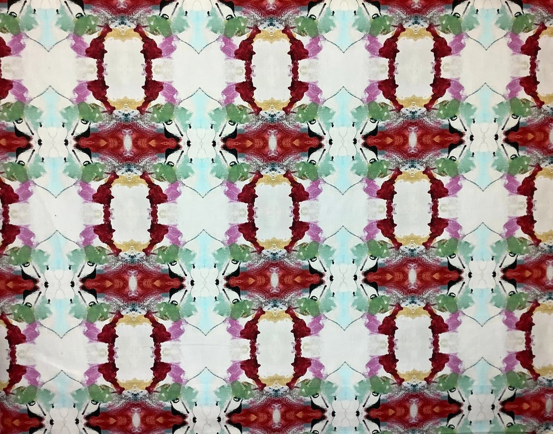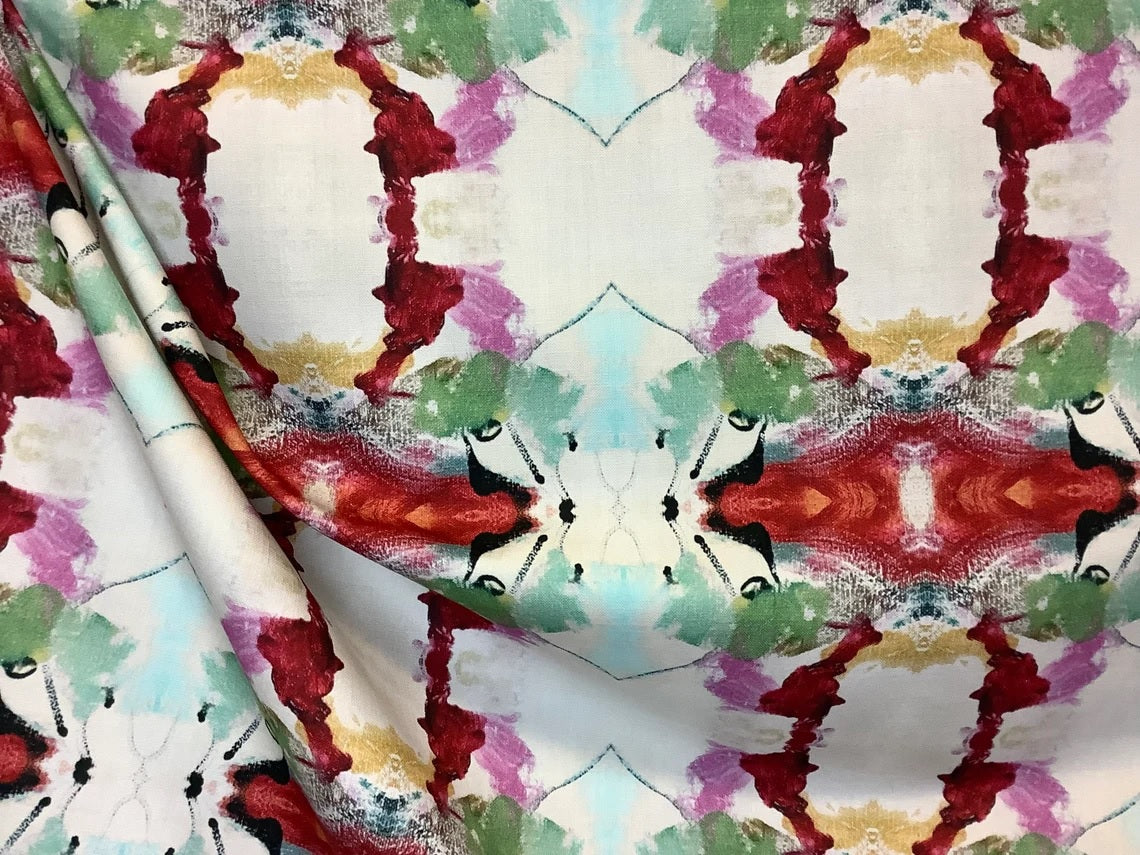 DESCRIPTION: Hamilton Fabrics Greta Raspberry is a colorful abstract, contemporary design fabric. Greta Raspberry is printed on high quality 100% cotton fabric with amazing, colorful details. It's a versatile fabric suitable for various projects. The color registration shows red, purple, green, yellow, light blue and black on a white colored background.