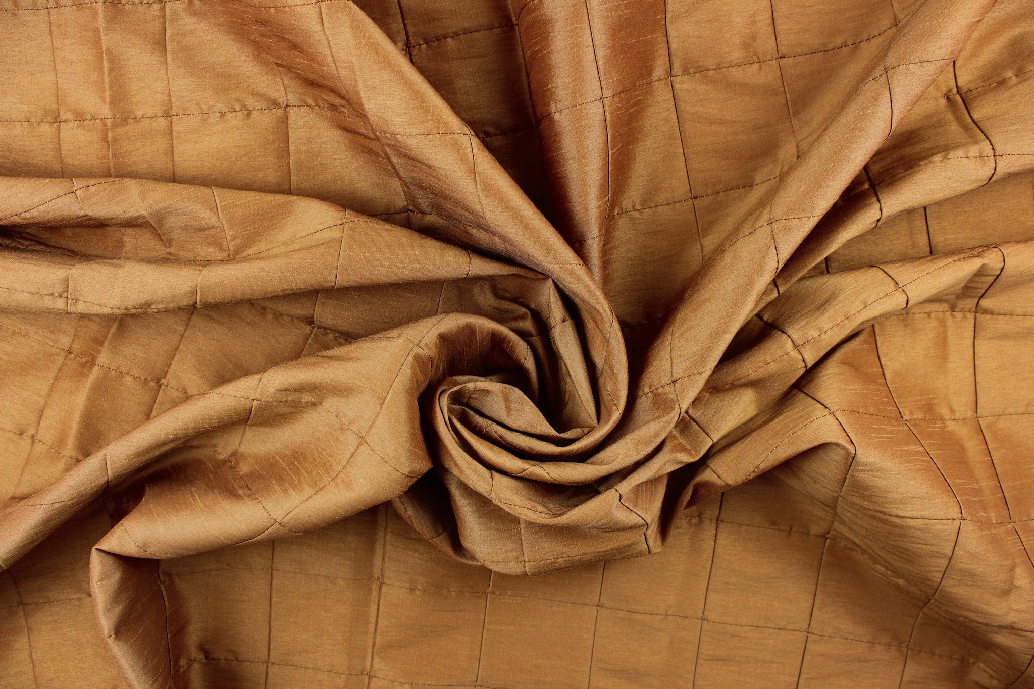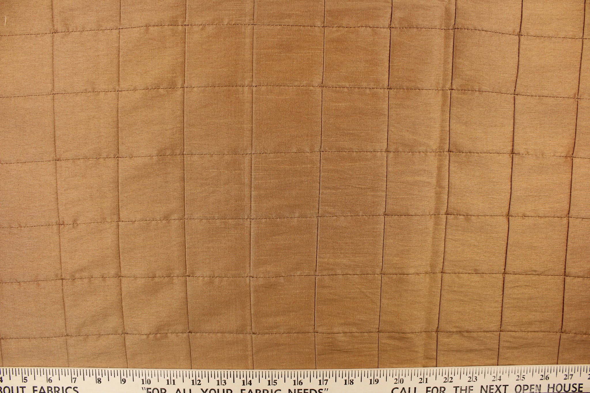 DESCRIPTION: This beautiful jacquard fabric features an pin tuck block design in a rich golden tan color. It also has a slight shine to it which enhances the design. Use this for light upholstery, pillows, bedding, window treatments, etc. We offer this Caldwell jacquard in several different colors.