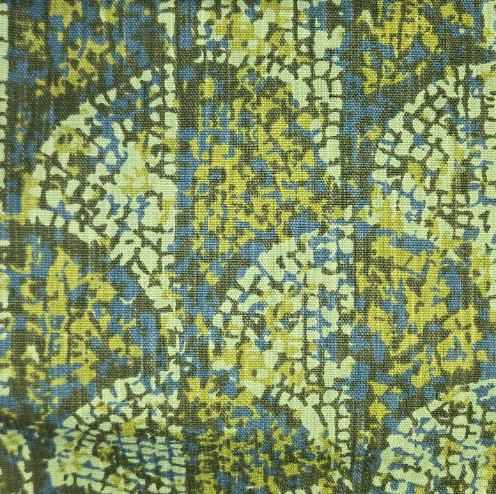 DESCRIPTION: Lacefield Designs Rhodes Fabric in Celestial features nature-inspired plaid with an organic, mosaic-like design. It features stylized, interlocking shapes that create a sense of texture and depth. The color palette features blue, forest green, medium green and aqua.