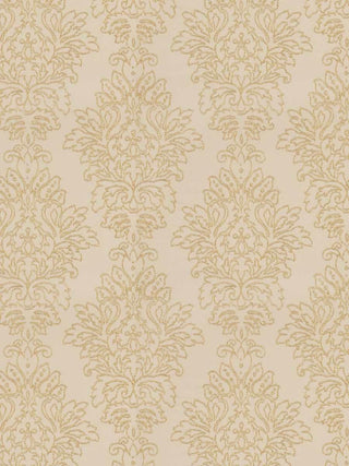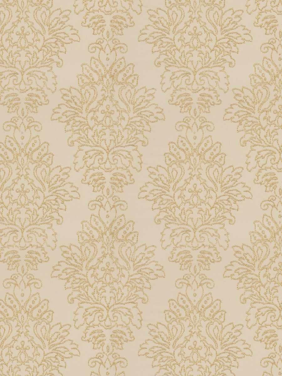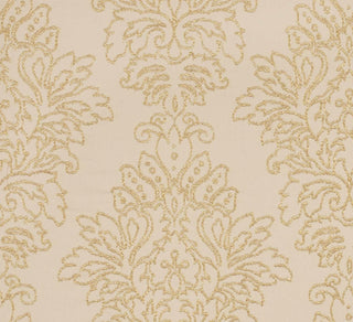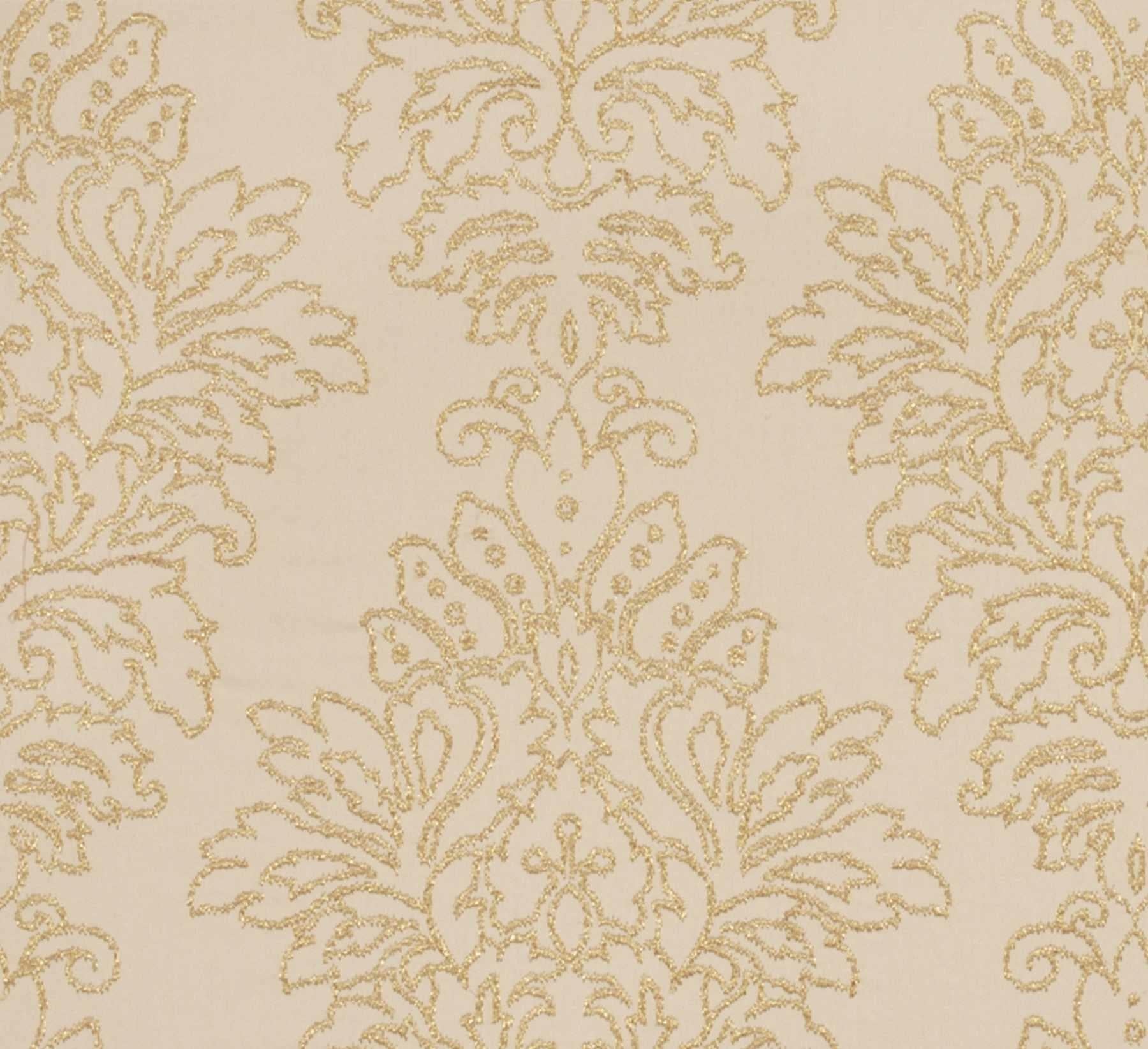 DESCRIPTION: This famous maker fabric features an embroidered, traditional, damask design in gold on a cotton gold fabric.