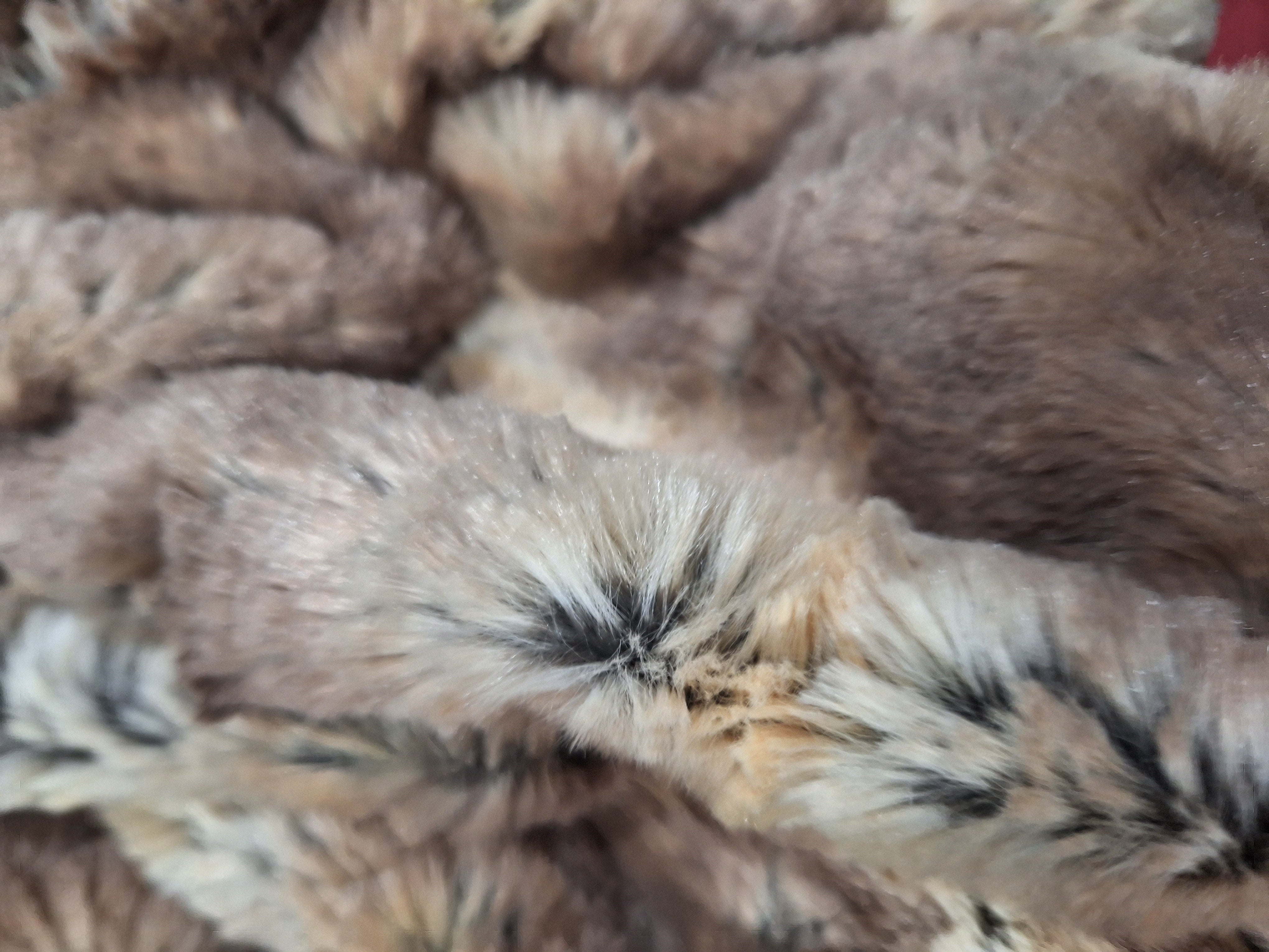 DESCRIPTION: Rabbit Faux Fabric in Brown is lush with exquisite softness and fine guardhairs. Faux rabbit fur is a synthetic material, typically made from polyester, designed to mimic the look and feel of real mink fur while being more affordable and animal-friendly.