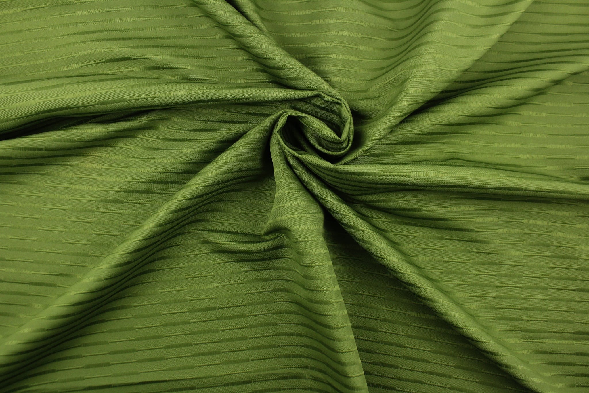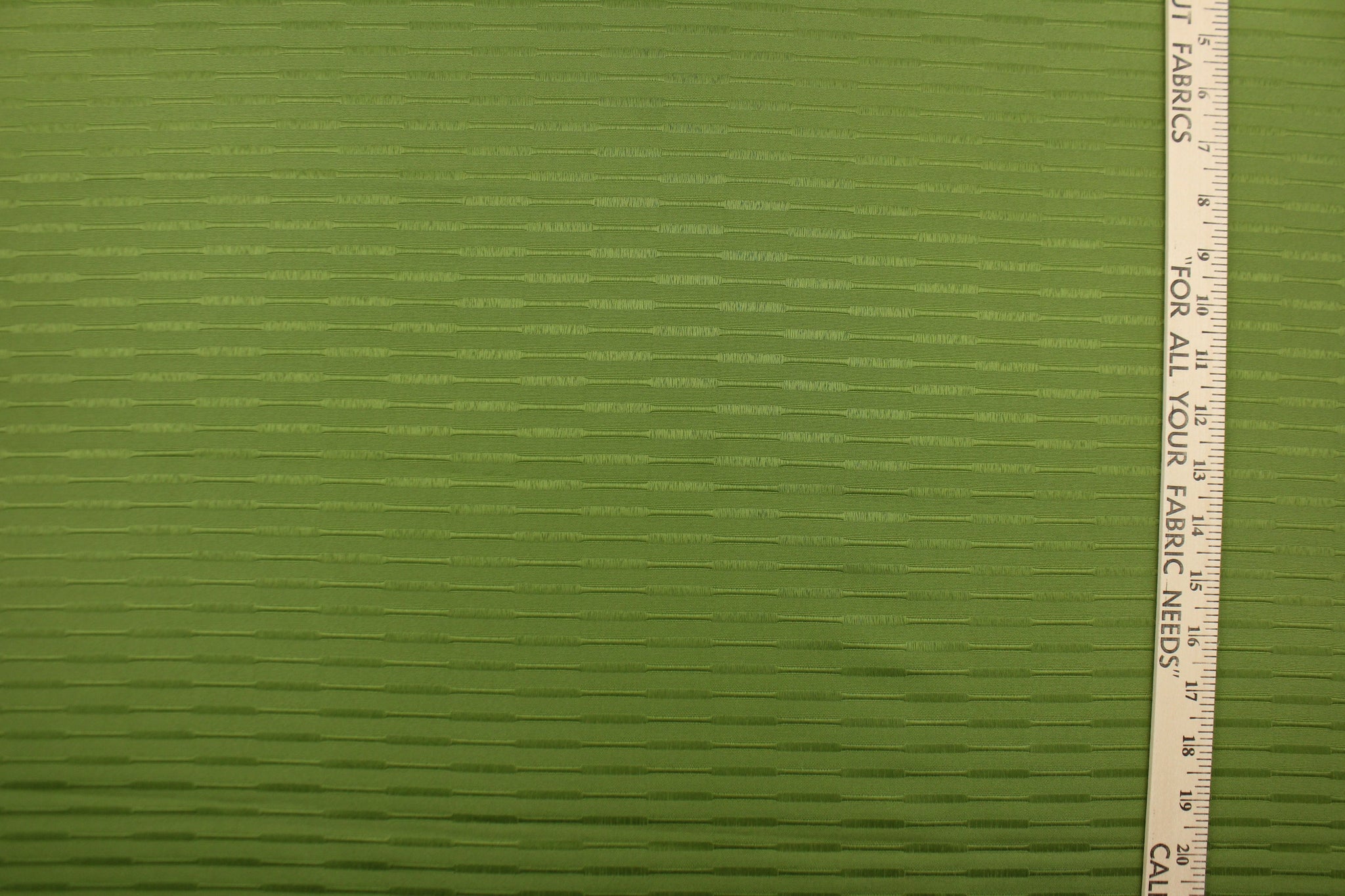 DESCRIPTION: This duotone striped jacquard fabric in pea green is durable and hard wearing with a rating of 30,000 double rubs. It can be used for multi purpose upholstery, bedding, accent pillows and drapery.