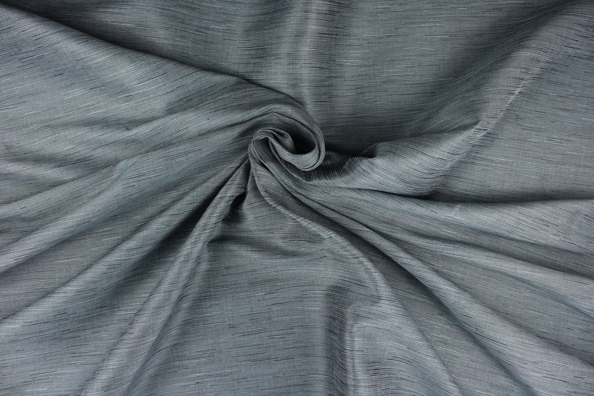 DESCRIPTION: This multi-purpose mock linen in charcoal with blue tones has a classic raw silk look and is suitable for draperies, curtains, cornice boards and headboards. We offer this fabric in other colors.