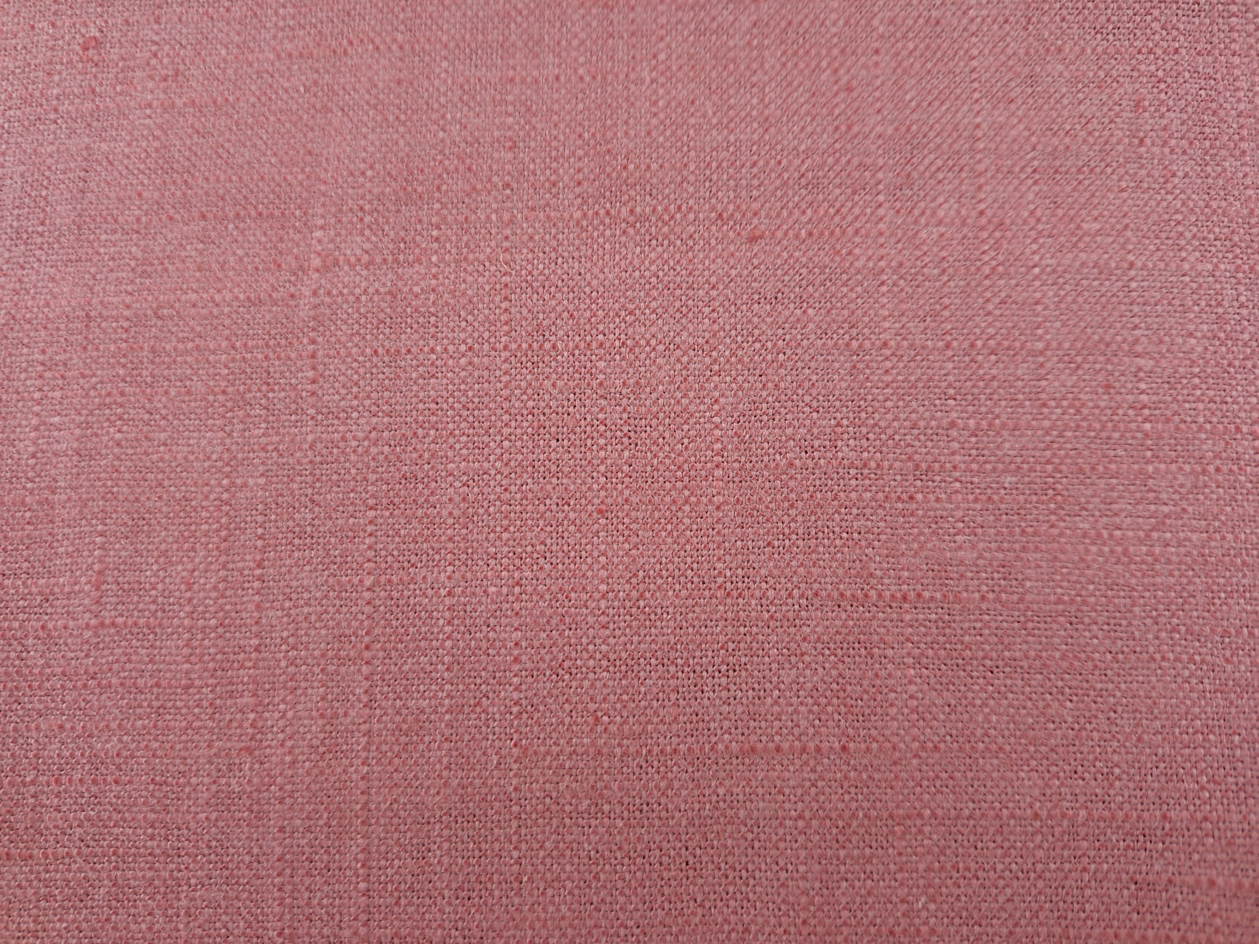 DESCRIPTION: A rose color linen and rayon blend fabric.  Rayon is added to linen fabric to create a versatile fabric that combines the strength of linen with the drape of rayon. Linen-rayon blends are less likely to wrinkle than pure linen, and the rayon makes the fabric softer. The blend is also breathable and moisture-wicking and can be suitable for both casual and formal clothing. The fabric has been treated to be stain and soil resistant.
