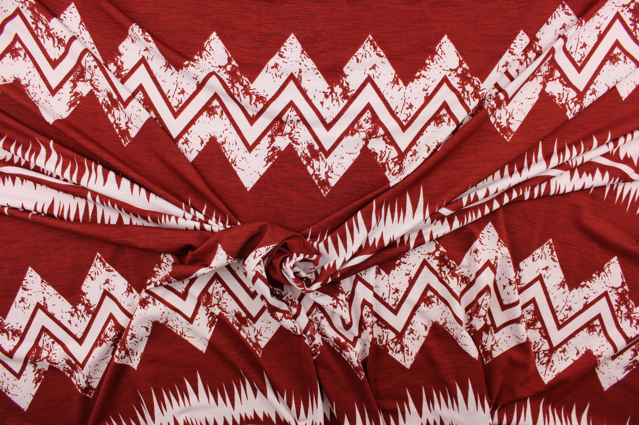DESCRIPTION: This 2 way lycra fabric features an stripe design in rusted orange and white. Use this for apparel, etc. We offer a variety of lycra fabrics.