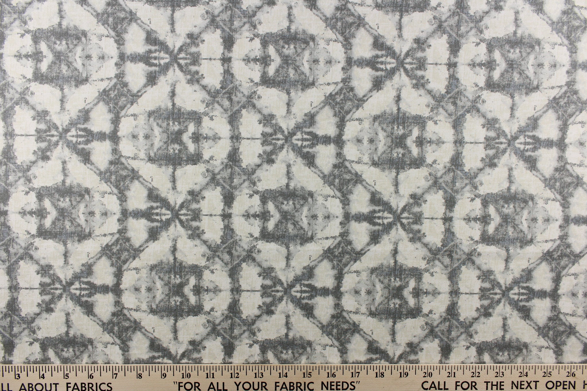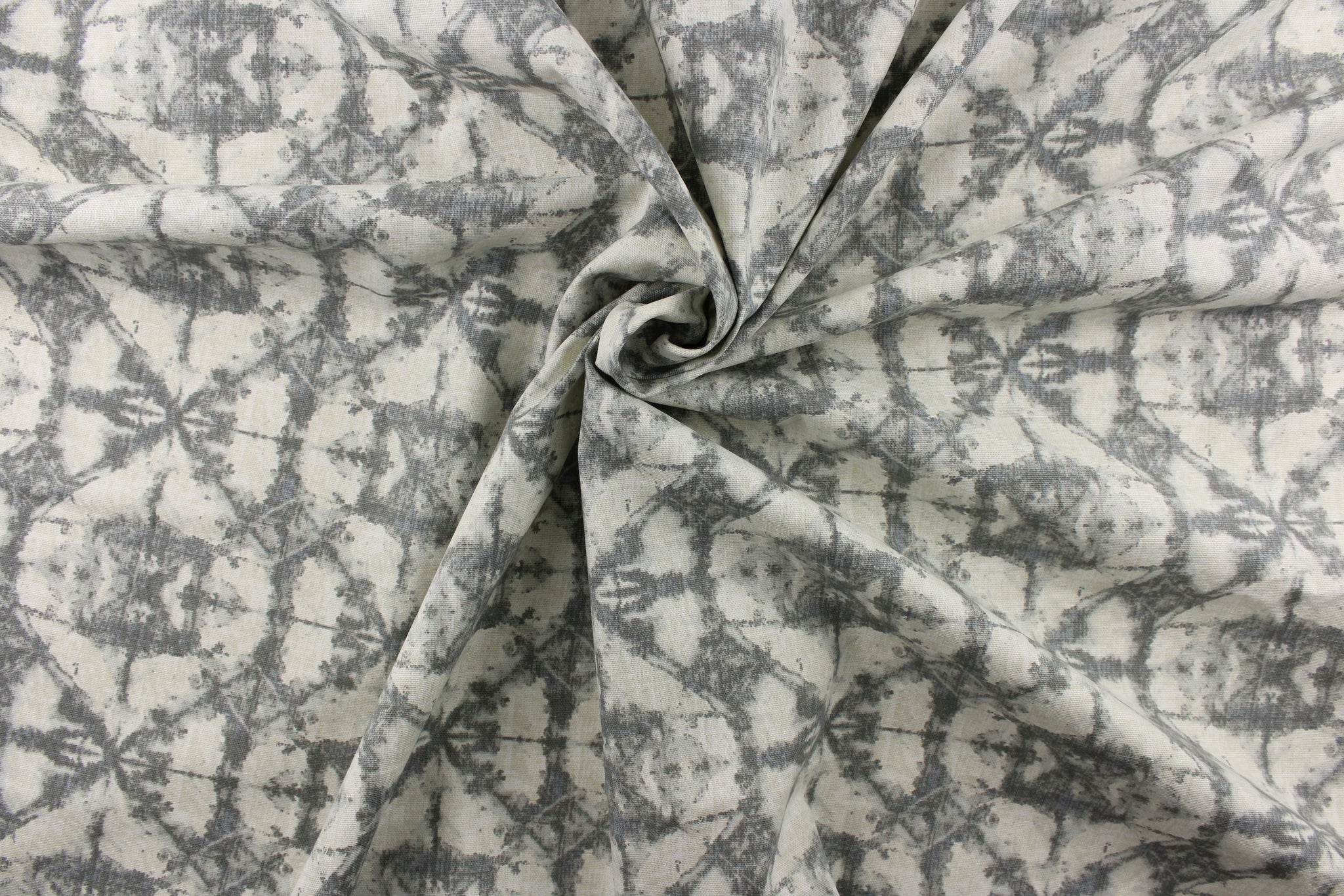 DESCRIPTION: This geometric design in gray and off white offer a modern look. It also has a slight distressed look to it. Use this for drapery, pillows, light upholstery, etc. We offer this design in several different colors. This fabric offers a soft workable feel yet is durable and stable.