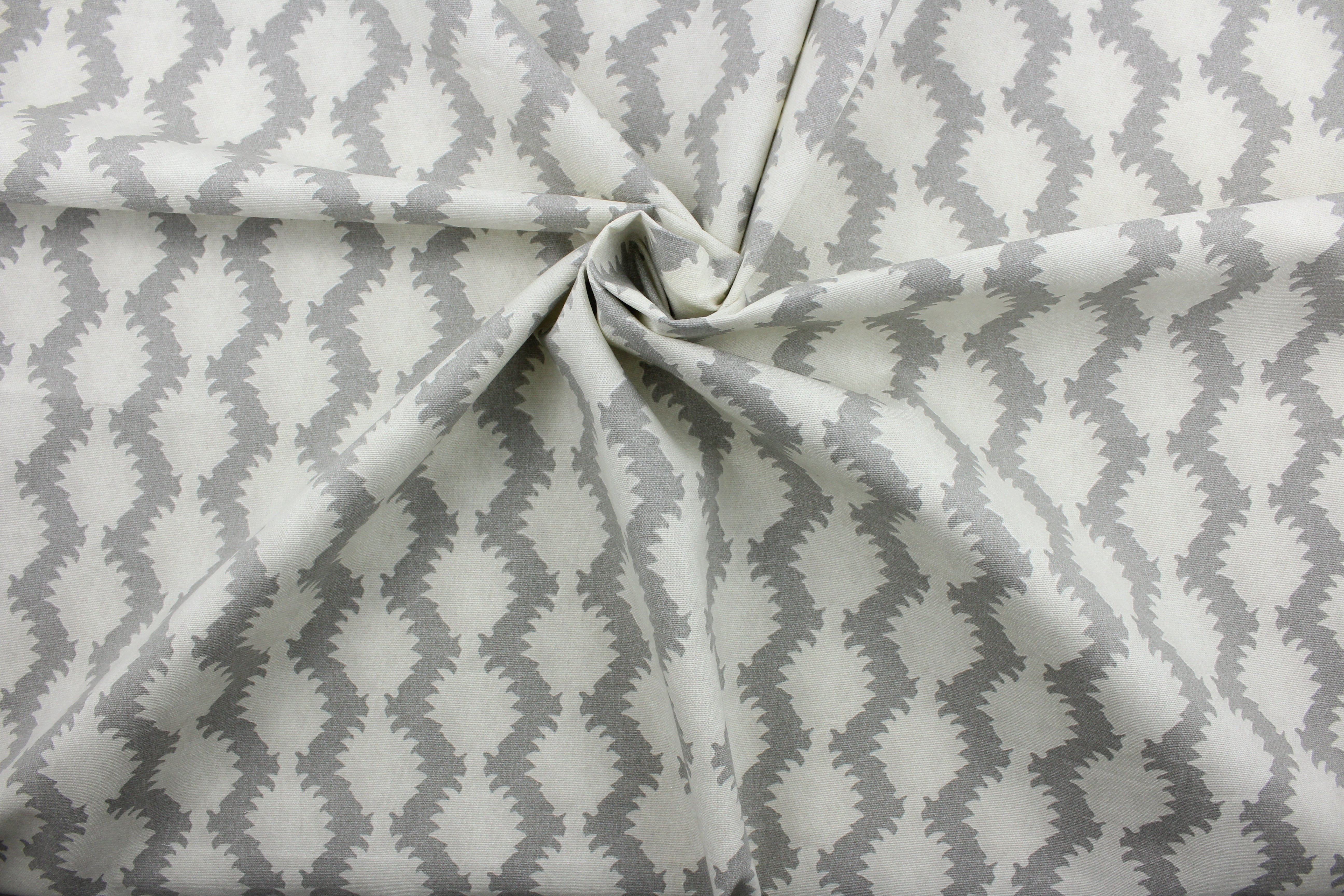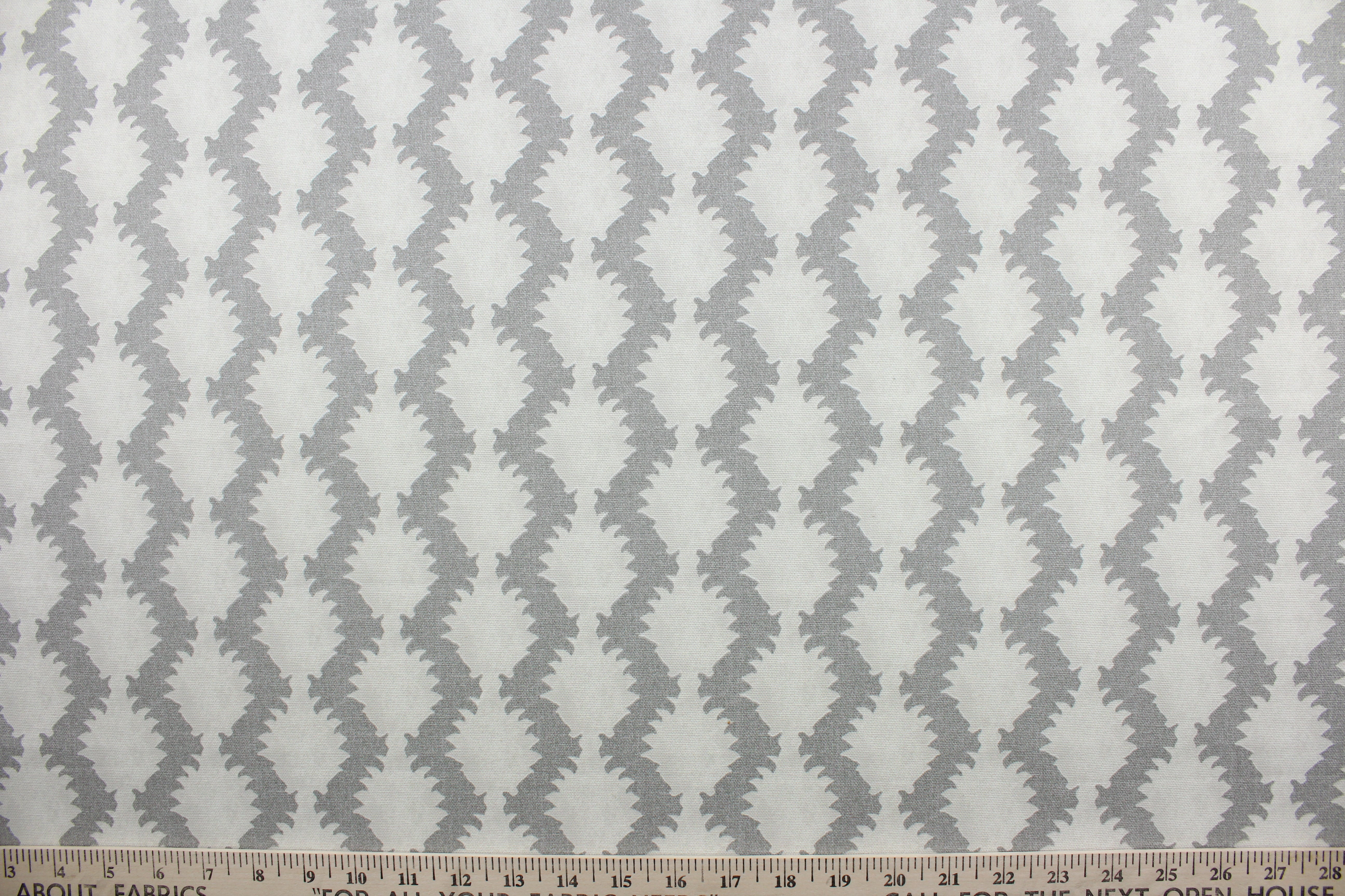 DESCRIPTION: True to Form is a printed cotton fabric that offers superior durability and intricate detail. The beautiful silver grey and beige palette adds a touch of elegance to any space. The fabric boasts a remarkable 15,000 double rubs, providing long-lasting use. It can be used for several different statement projects including window accents (drapery, curtains and swags), decorative pillows, hand bags, bed skirts, duvet covers, light duty upholstery and craft projects.