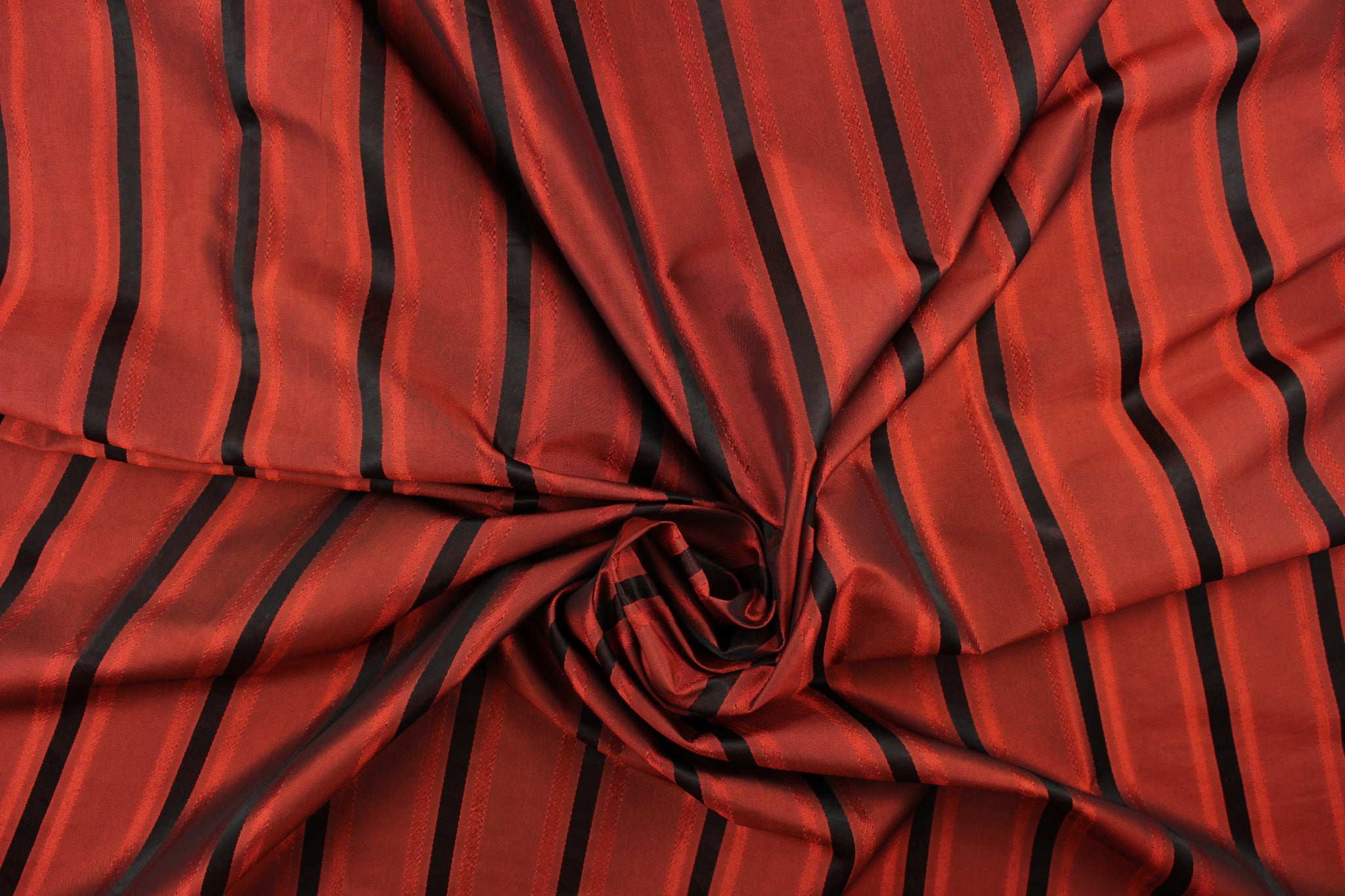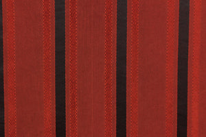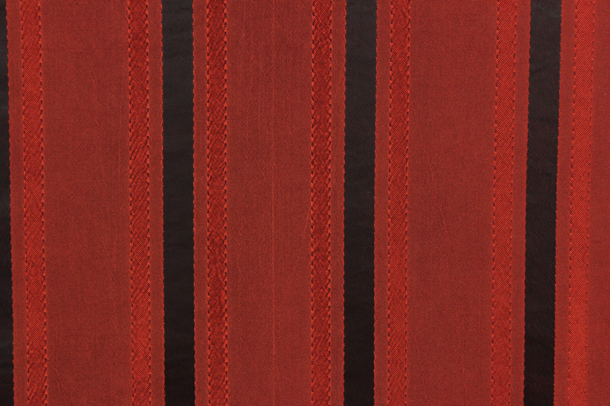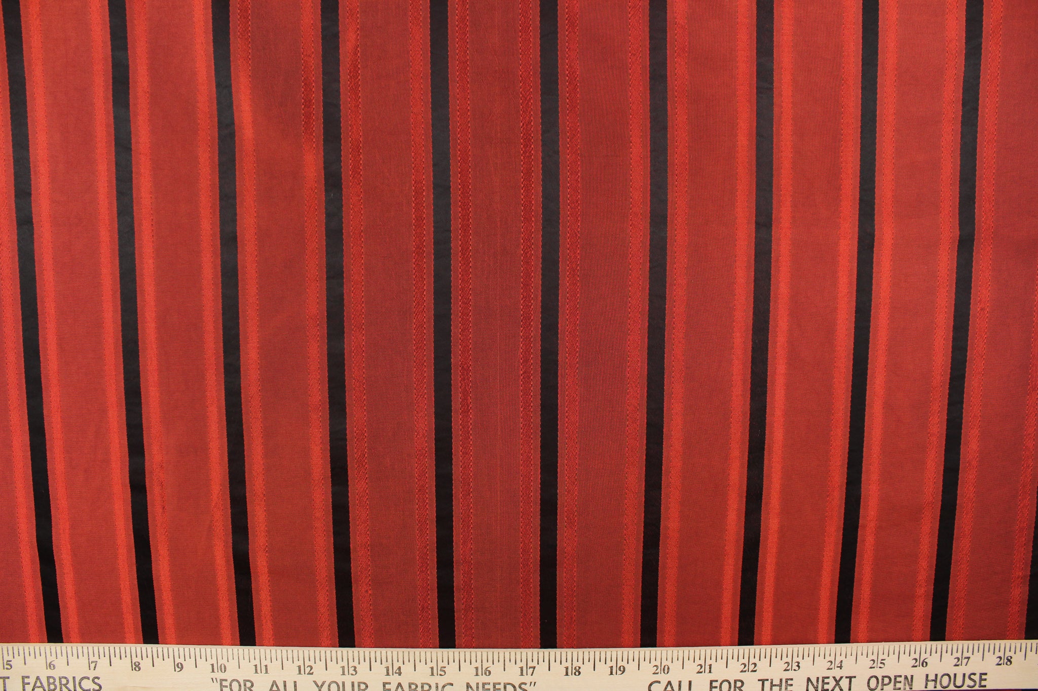 DESCRIPTION: This stunning yarn dyed fabric features a striped pattern in a rich red and black. Enhancing the various colors of the stripes is a slight sheen. Light weight makes it versatile to work with but the 100% polyester fabric makes it  durable, strong, and wrinkle resistant. This fabric would enrich any room whether you use it for drapery or an accent chair. It is also perfect for throw pillows, home décor, duvet covers and apparel. The possibilities are endless. We offer this Warwick striped pattern  in a wide variety of colors